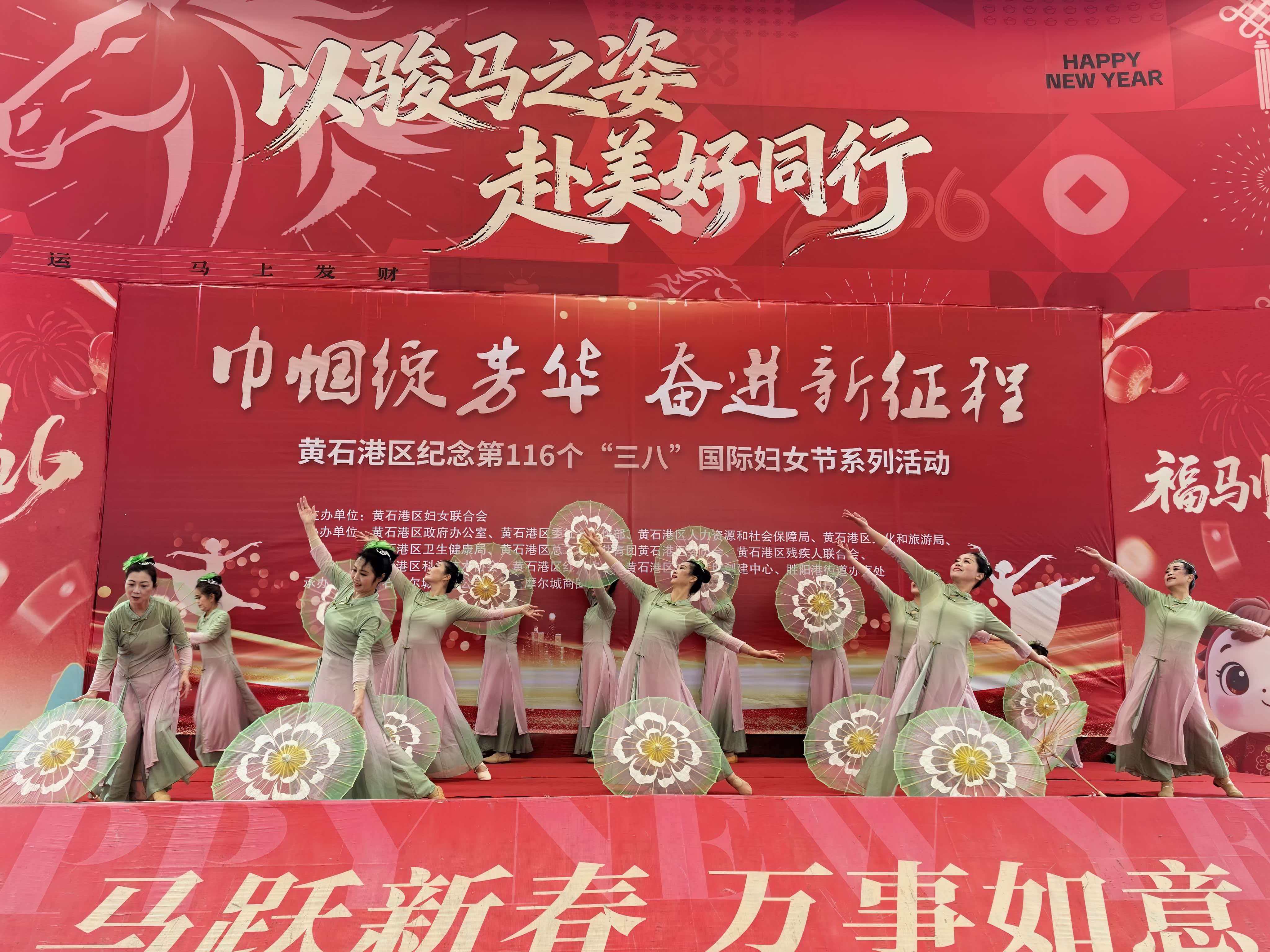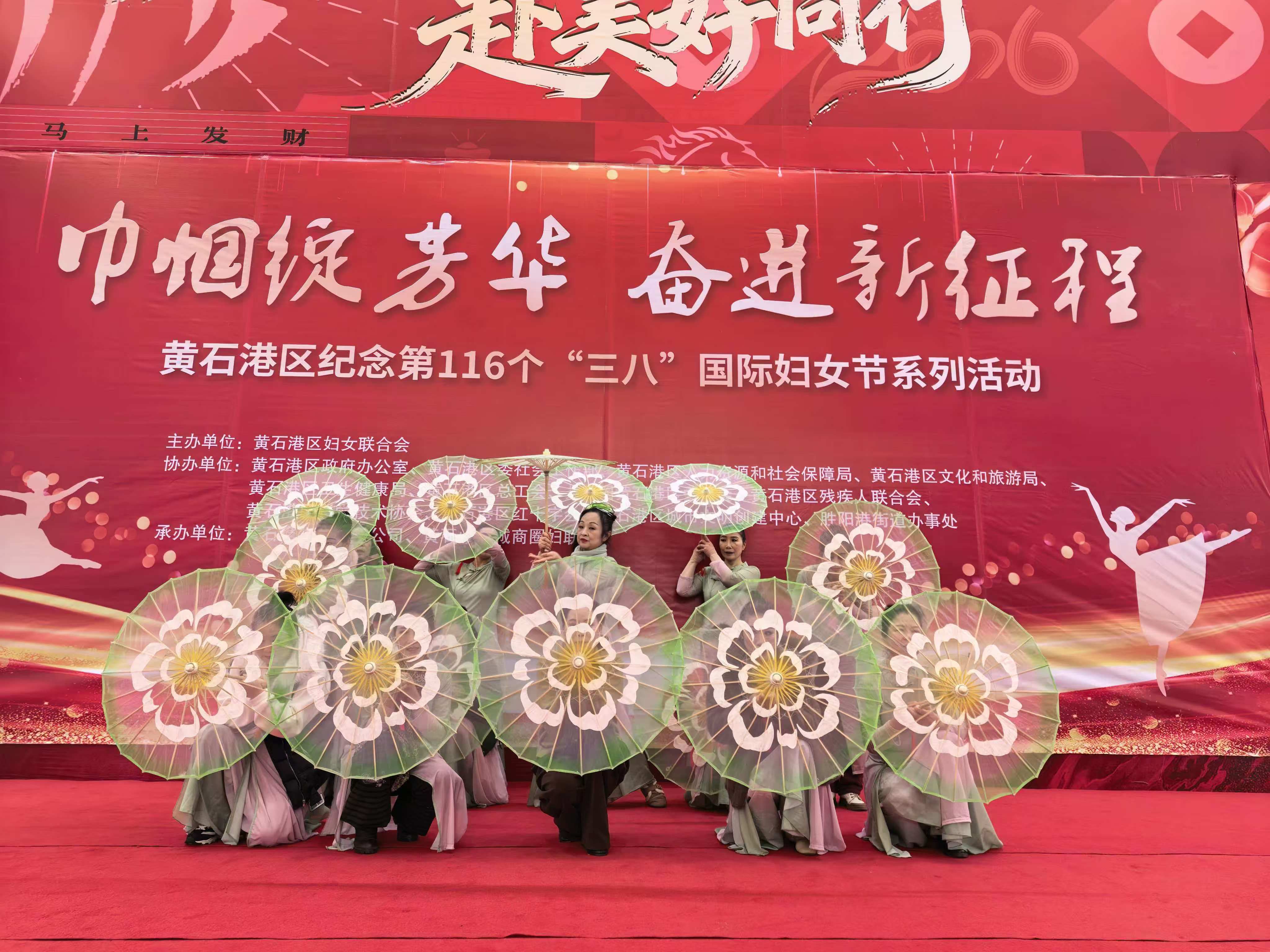 为深入学习贯彻党的二十大和二十届历次全会精神,彰显新时代女性风采,传递妇联组织温度,黄石港区文化馆选送优秀节目参加由区妇联联合相关区直部门在摩尔城湖滨路广场举办的黄石港区纪念第116个“三八”国际妇女节系列活动——“巾帼绽芳华 奋进新征程”主题文艺展演,充分展现新时代女性健康向上、自信优雅、多才多艺的精神风貌,丰富妇女群众精神文化生活,营造喜庆热烈的节日氛围。